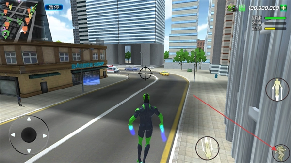进入城市场景后,可借助左下角的摇杆操控角色移动,界面右侧会呈现健康、装甲等状态信息,帮助玩家及时了解角色当前的状态情况。
