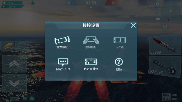 反Y轴功能的开启方式很简单,只需点亮对应的“反Y轴”按钮即可。开启后,当你将设备向上倾斜时,游戏里的战机就会向下飞行;把设备向下倾斜,战机则会向上飞行,而左右方向的操控逻辑保持不变,这个设置对习惯躺着玩游戏的玩家来说会比较适配。