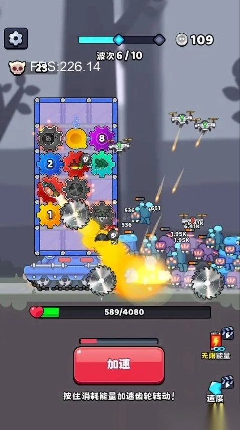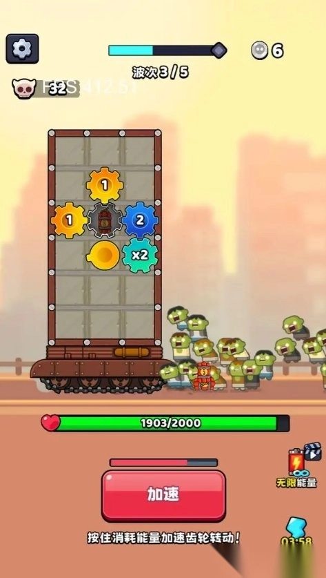 2. 消耗能量可加快齿轮运转,从而提升坦克的攻击速度,使其能更迅速地击倒僵尸。