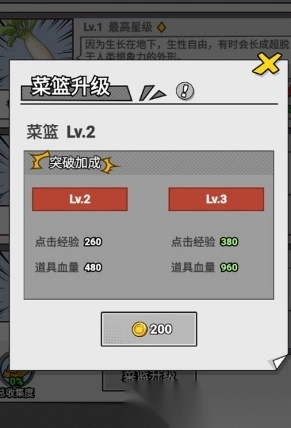 5. 在图鉴里,升级菜篮能够突破经验值的获取上限以及提升道具的血量。