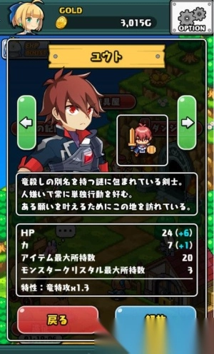 4.游戏里主角默认是身着蓝衣的美少女剑士,不过花费游戏内的金币或者额外付费,就能解锁并使用红发少年勇者以及其他不同角色。