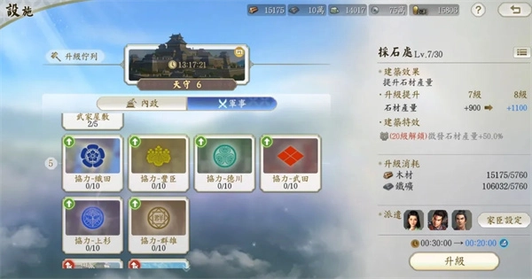 2、建筑等级提升后,就能建造特定建筑;辩才等级提高则可解锁每日上纳的督促功能,能收集双倍资源,建议优先学习。这些技能都能增强你收集资源时的优势。