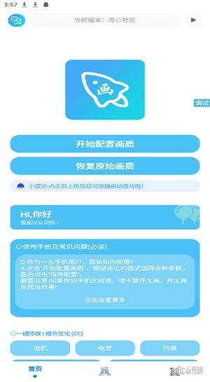 1、把青辰画质助手安装到自己的手机里,接着打开软件进入主页。