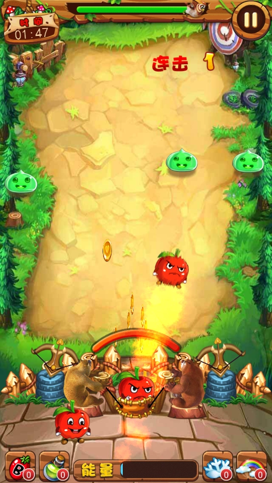 这款游戏的玩法和《燃烧的蔬菜》有几分相似,通过融入丛林等不同场景来提升游戏的趣味性。