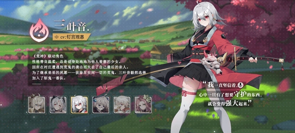 荒神联动角色三叶音,是位性格善良温柔、总爱设身处地为他人着想的少女。她所在的村庄曾遭荒鬼袭击,让她痛失最后的亲人。为了继承弟弟“拔除世间所有荒鬼”的夙愿,三叶音毅然决定加入斩鬼一番队。
