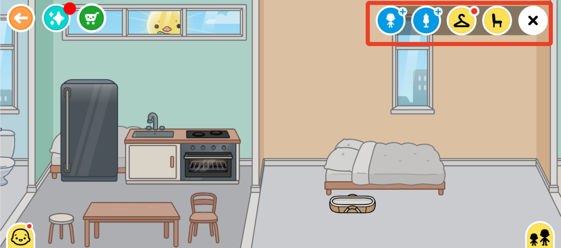 3、随后点击右上角的图标,就能看到角色、服装以及家具这几个分类。