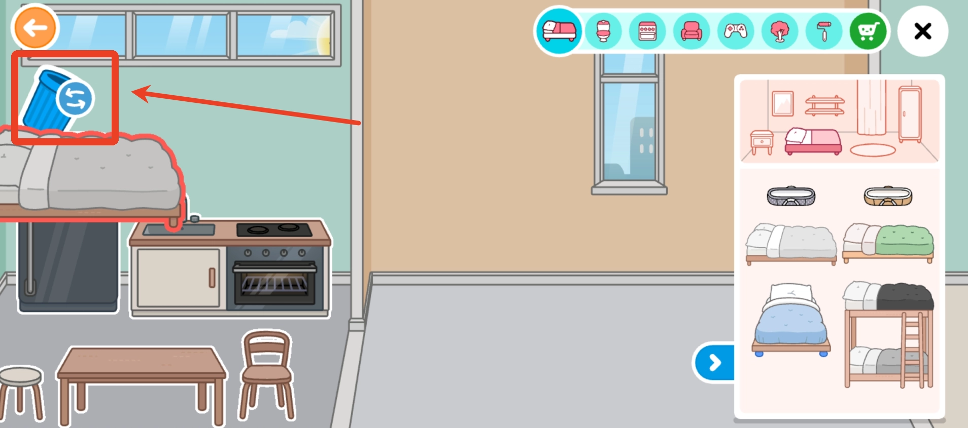 5、家具选得不合适也没关系,把它拖到左上角的垃圾桶那里就能删除。
