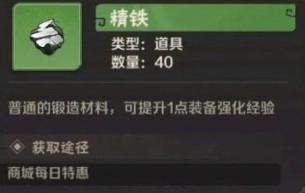 例如,紫色装备能提供40点经验,但分解它后,得到的是只能提供10点经验的蓝色三炼精铁,而不是直接获取一块紫色的九炼精铁。