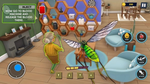 1、需要借助策略与潜行技巧避开老奶奶的追捕,同时伺机进行叮咬,以此考验玩家的智谋。