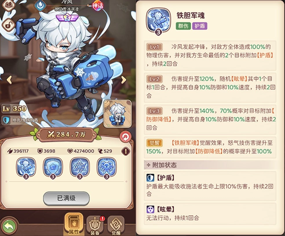 3、坦克护盾:暴风雪(护盾免伤,眩晕控制)