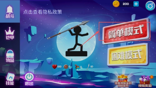 4、游戏难度的选择方法:进入战斗模式界面后,挑选“简单模式”或者“困难模式”即可开启游戏。