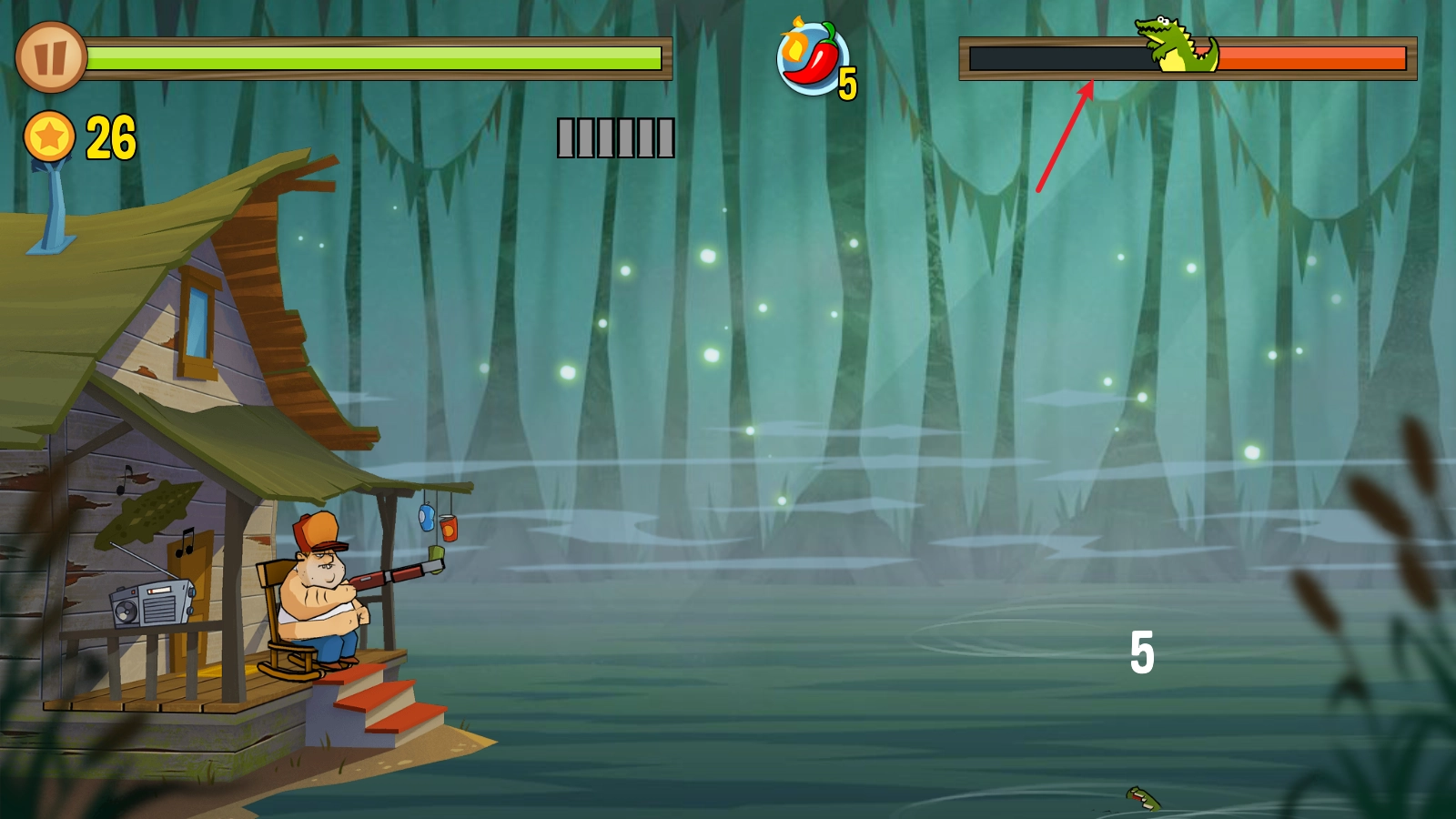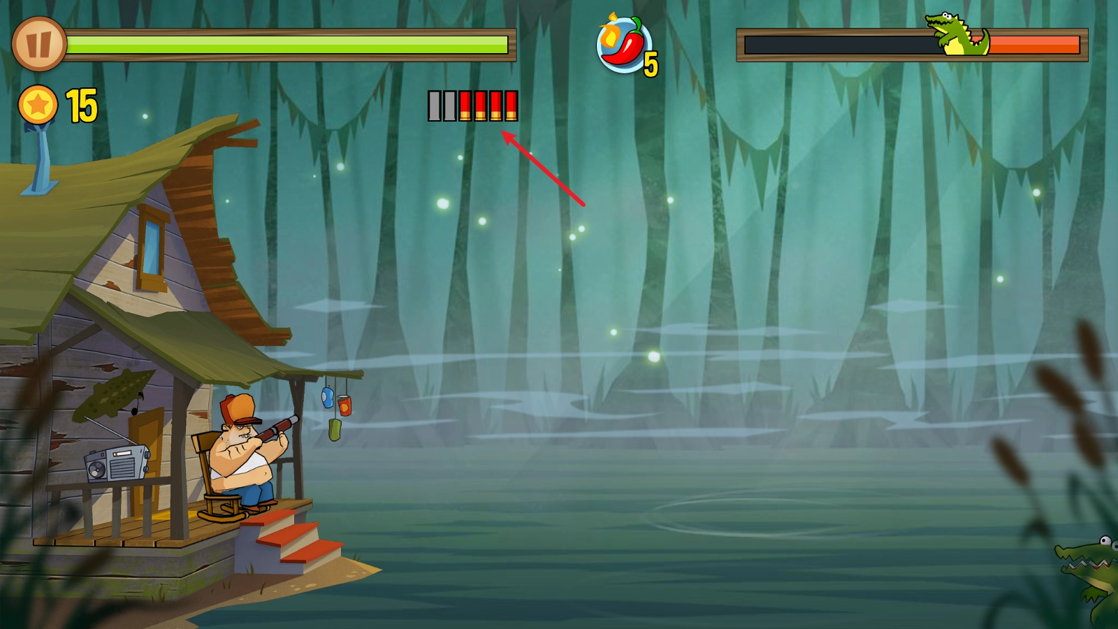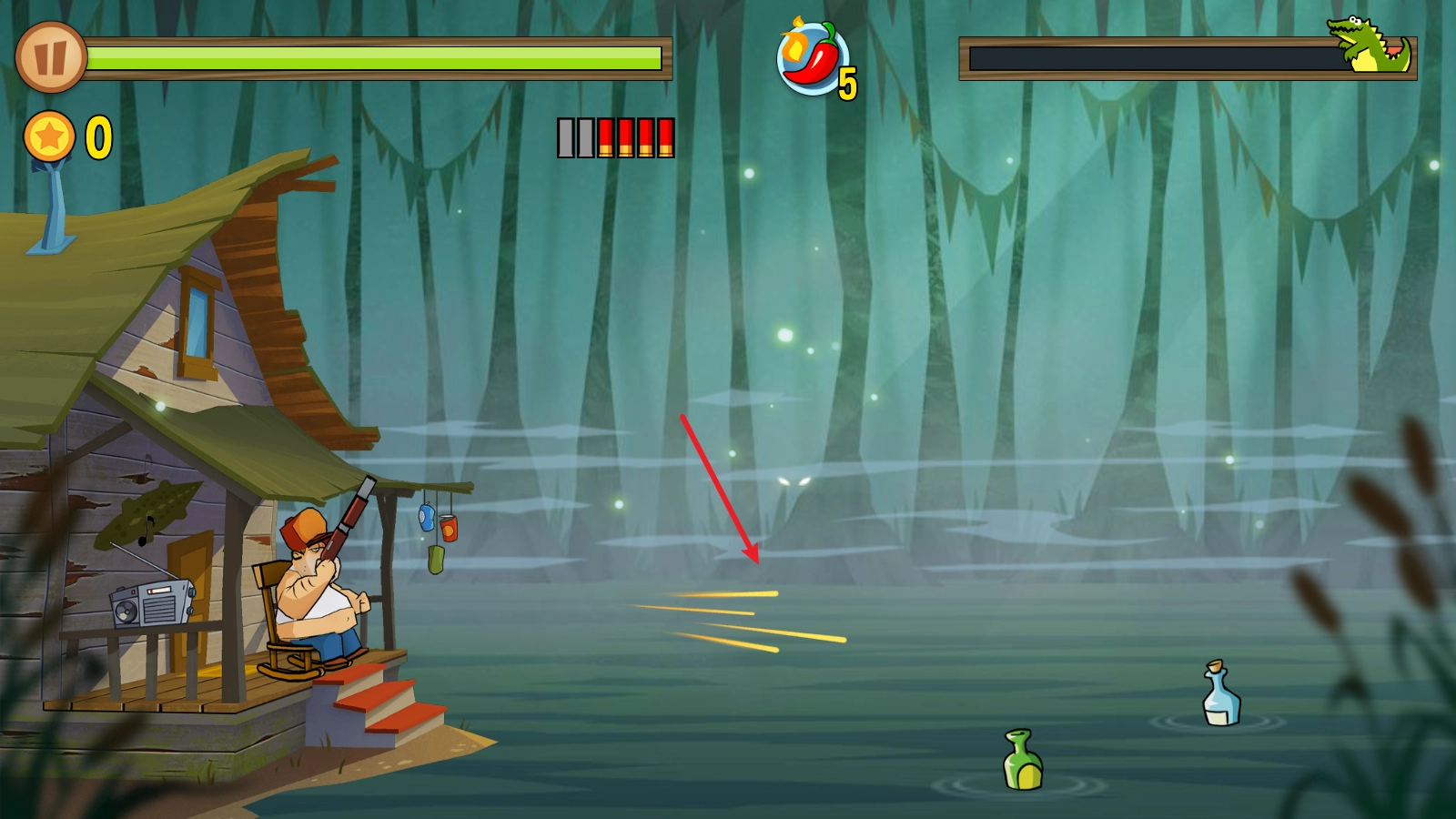 《沼泽激战》(Swamp Attack)是一款充满美式夸张风格的2D横版射击塔防游戏。游戏主人公居住在一片森林里,他的小木屋周边环绕着一片沼泽,沼泽中栖息着众多动物,这些动物随时可能对小木屋发起围攻。玩家需要化身为这位主人公,拿起手中的枪械守护小木屋,捍卫自己的领地! 游戏诙谐幽默的风格是其极具吸引力的特色之一。比如,主角即便陷入重重包围,依旧从容地坐在小板凳上悠闲打靶;而且手持不同武器时,还会呈现出各种呆萌的表情,十分有趣。游戏内设有丰富多样的关卡可供挑战,随着挑战的推进,玩家还能用金币升级武器、提升战力,以应对更多的挑战!
