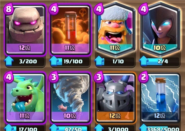 4、收集皇室战争家族成员以及你熟悉的《部落冲突》中的军队、法术和防御建筑等卡牌,来打造并升级属于你的卡组。