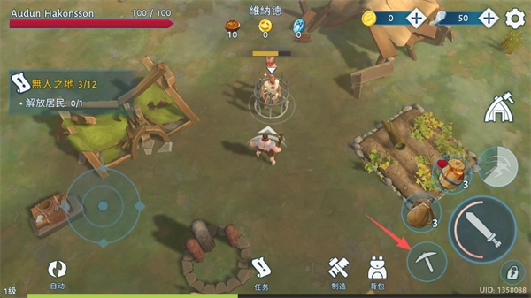 5、随后根据任务提示,点击右下角的石镐图标,协助解救被困的居民。