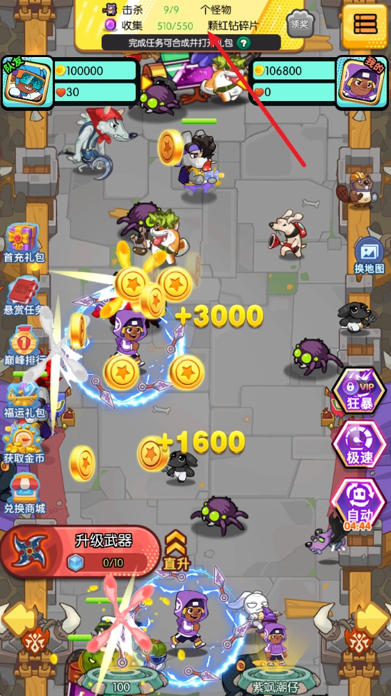 很适合用来放松解压的一款割草刷怪游戏,玩法简单易上手,满屏特效也能带给你无比畅快的体验,完成任务还能获得不错奖励呢!