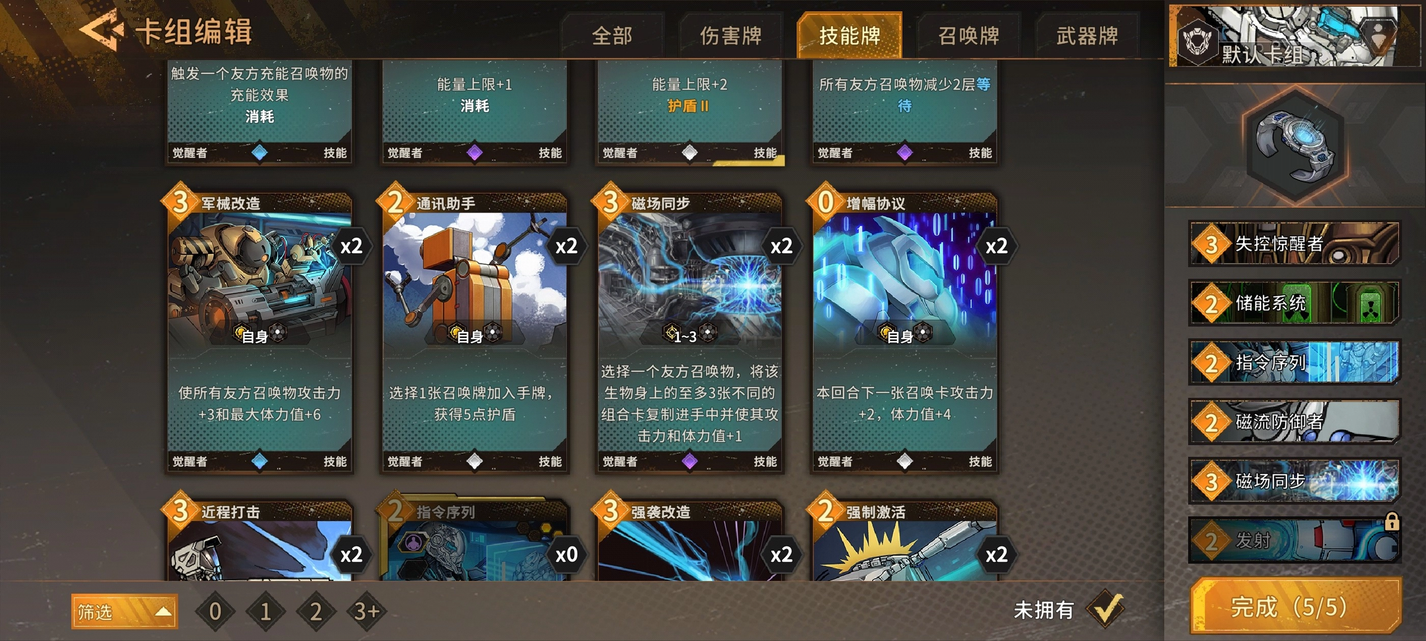 我们采用的是贴膜召唤玩法,荒野猎人这套牌组里,我们最急需的提升能量上限的方法是缺失的。而觉醒者与荒野猎人两个牌组的卡池混合在一起,会让探索过程中的抽牌库变得杂乱,使得我们想获取增能类卡牌的难度大幅上升。