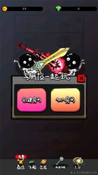 和朋友一起玩的话,得创建房间,或者加入你好友的房间。