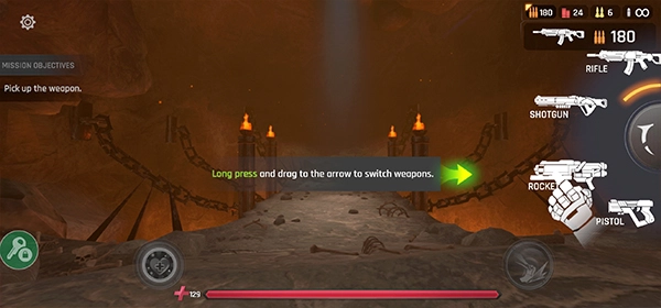 屏幕最右侧有个按键,滑动它会弹出众多武器选项,滑动到你心仪的武器处就能完成选择。