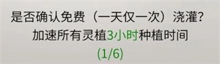 浇灌:每日共有6次浇灌的机会,每次浇灌所有灵植可以加速3消失。
