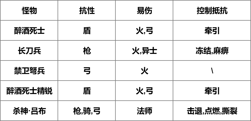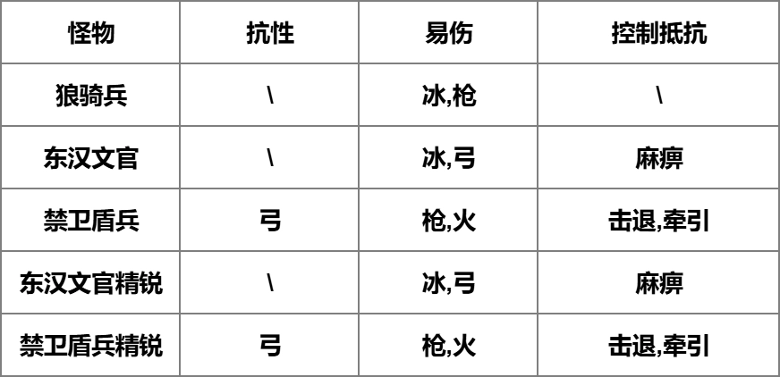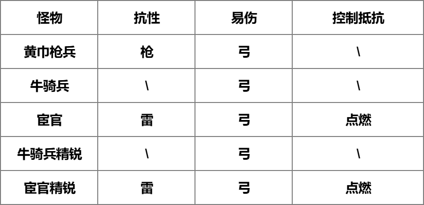 所有怪物都对弓箭伤害有弱点,这关选弓箭基本就能轻松通关,记得搭配刀盾兵或重骑兵来应对宦官就行