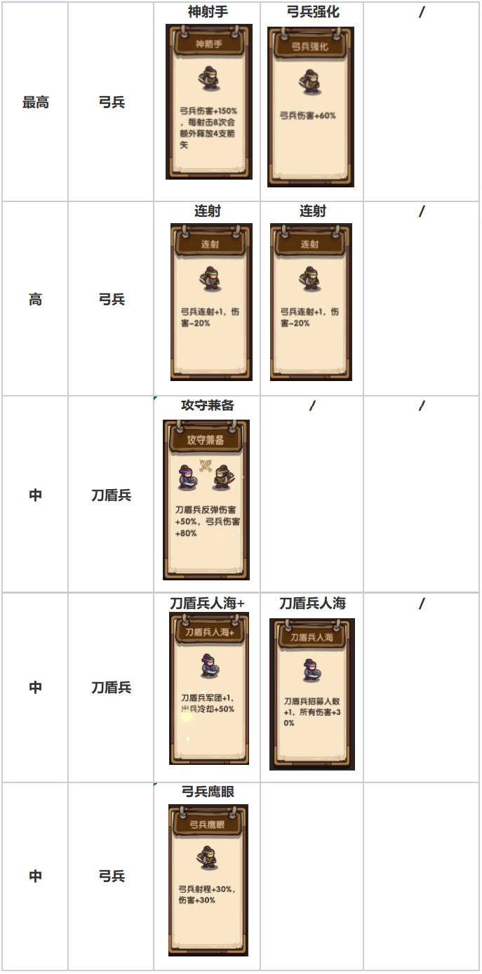 剩下的兵种要不要强化已经无关紧要了,不妨考虑带上连射弓兵来协助破盾