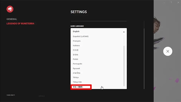 在设置页面点击“GAMT LANGUAGE”,向下滚动鼠标找到“繁体中文”选项就能完成设置。