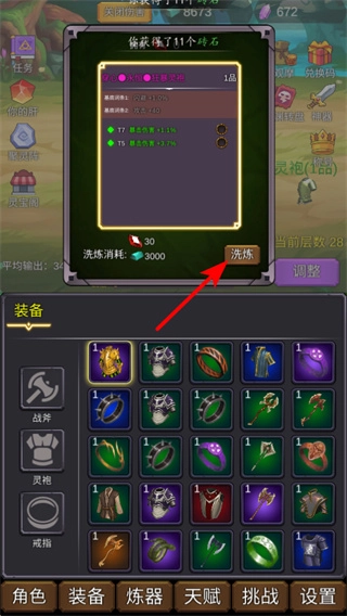 进入炼器界面后,挑选需要强化的装备,耗费材料与铜钱并点击洗炼,就能增强装备属性,这是装备强化的基础步骤,为后续的强化积累优势。