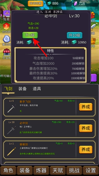 针对已成功养成的飞剑,玩家只需点击“升1级”按钮,消耗系统指定的对应材料与资源,即可提升飞剑等级。随着等级的提升,飞剑将解锁更强大的属性加成与独特特性,从而助力角色实力得到进一步的强化。