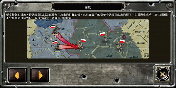 若要支援您的进攻行动,需先选定部队以及正遭受友军攻击的目标省份。接着在弹出的菜单里挑选参与助攻的师团。一旦进攻达成目标,这些师团不会转移至目标省份。执行命令时,请轻点对应的按钮。