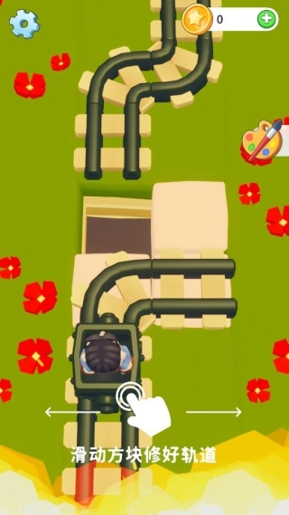 通过滑动操作连接断裂的火车轨道,在有限的格子内移动,最终将铁轨连通,完成闯关任务。
