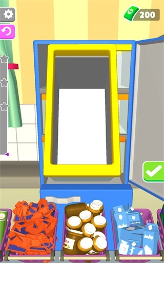 1、游戏画面采用极简风格设计,仅展示待收纳的物品和冰箱本身,能否顺利完成收纳完全取决于玩家的操作技巧;