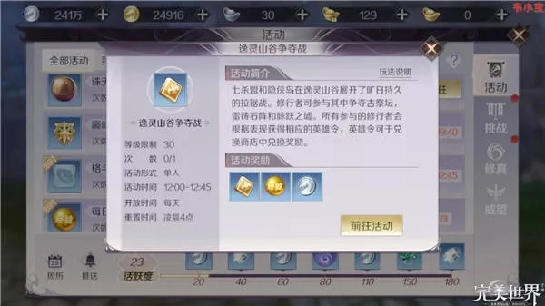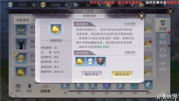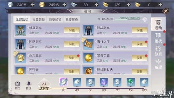 手机游戏的一大优势在于能借助碎片化时间实现放松身心的效果,完美世界里有不少活动,要是时间足够把所有活动都参与的话,收益自然是最大的,但要是时间比较紧张,该怎么规划时间、依据什么顺序去完成这些活动,才能让效率达到最高呢?