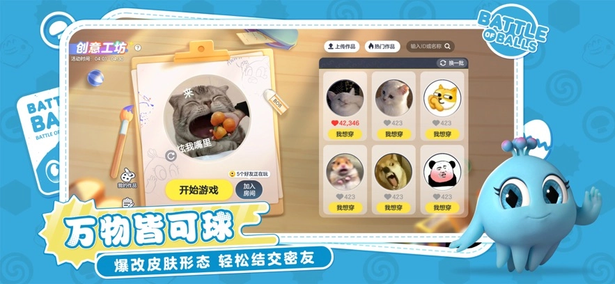 各式各样的球体造型搭配多样的皮肤系统,你能够自由挑选并操控它们开启激烈对抗;
