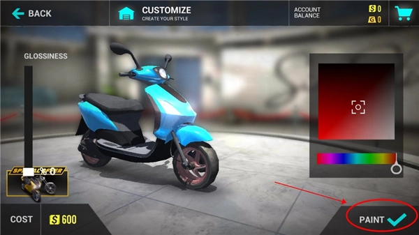 接下来我们能够对摩托车展开个性化改造,像轮毂样式、外观涂装、灯光系统这类方面都可以调整。