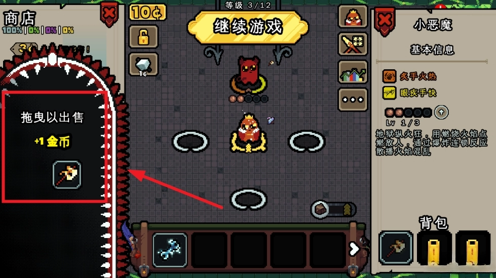 拖动到左侧拖拽以出售装备,更换金币