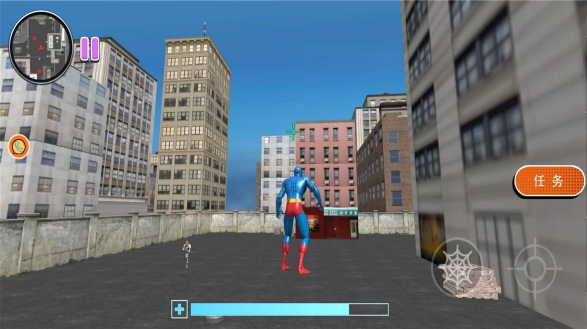 1、在变形英雄生存游戏里,请秀出你的飞行绳索技能,穿梭于城市之间,抵达城市中的高楼。