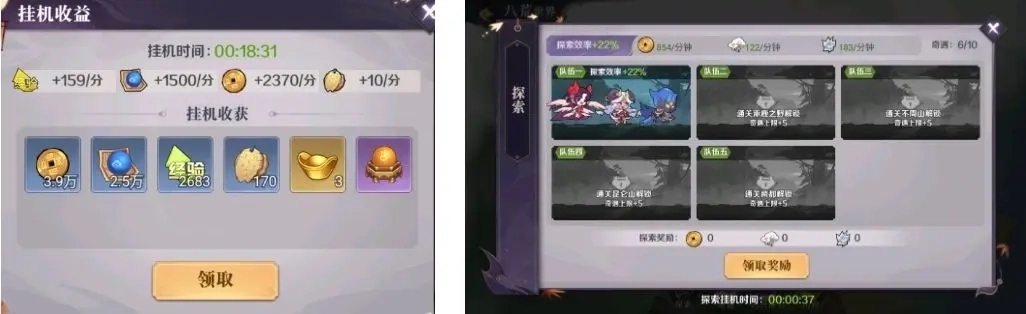5、挂机资源的累积时长不能超过12小时,八荒探索的奖励建议每天领取2次。