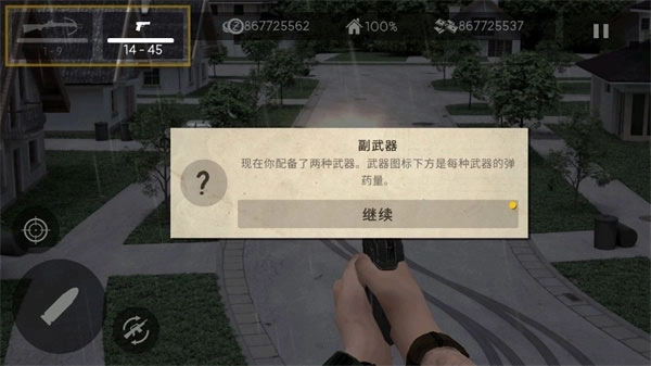6、现在你拥有两种武器,每种武器图标下方会显示对应的弹药数量,若需在不同武器间进行切换,只需轻触“切换武器”按钮即可。