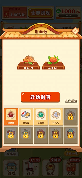药材成熟后请轻柔收割,完成订单即可立即获得相应的红包奖励。