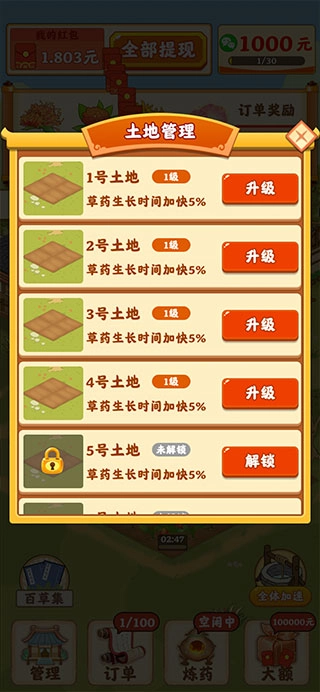 订单生成后启用加速功能,可缩短药材生长时长,提升收获效率。