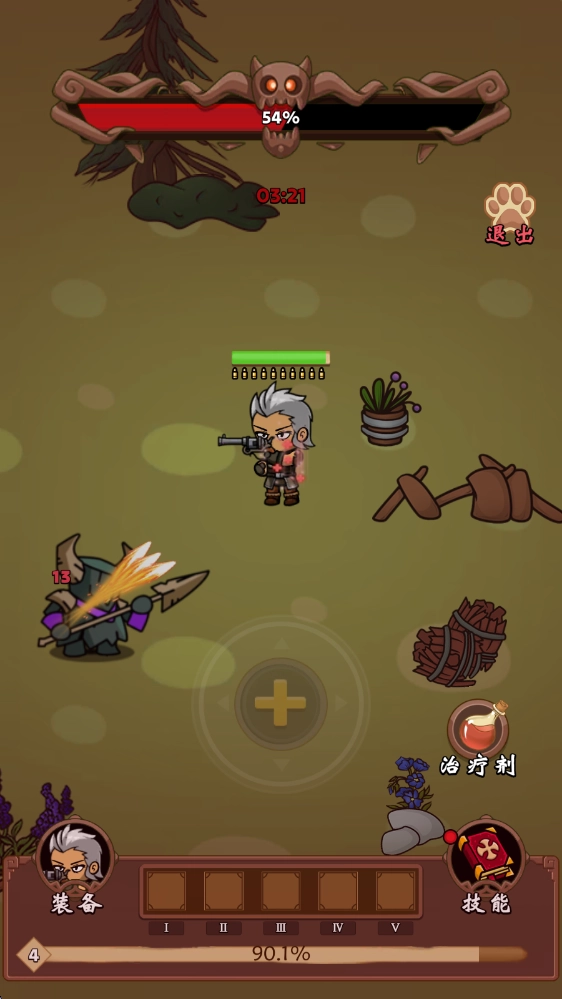 基础攻略 移动与战斗 左手控制虚拟摇杆走位 右手点击普攻+2个技能键(可自定义位置) 长按技能键触发蓄力攻击 核心目标 每层地牢存活5分钟(击杀怪物可延长时间) 击败守关Boss开启下一层 死亡后结算资源,强化永久属性