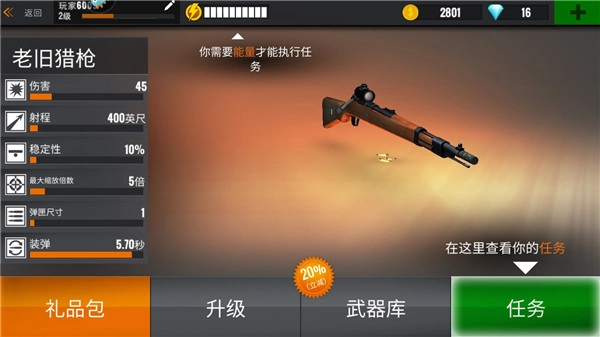 2、在这里可以对你的武器进行升级,这时我们点击任务;