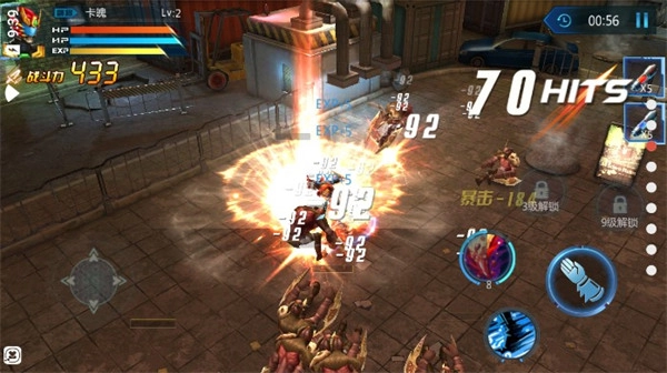 3、接着来让我们进入实战,左侧可以控制人物移动方向,右侧则是攻击和技能。