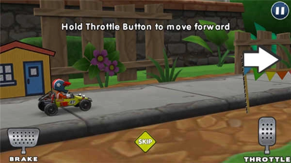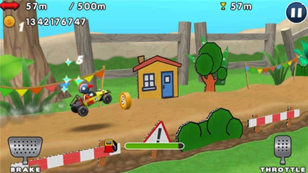 6、比赛开始后,点击右侧屏幕按钮可加速前进,左侧按钮用于控制刹车与倒车。请合理把控速度和刹车操作,以确保顺利完成赛道挑战。
