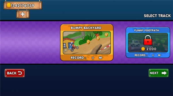 2、在游戏主界面,你可以滑动下方的车辆列表来解锁新车。每辆车都需要消耗金币,选好心仪的车后,点击“下一步”就能进入下一个页面。