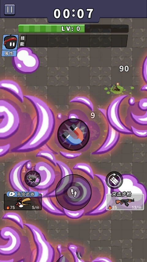4、场内还会随机掉落高级武器和道具,例如炸弹和磁铁,看到就点;