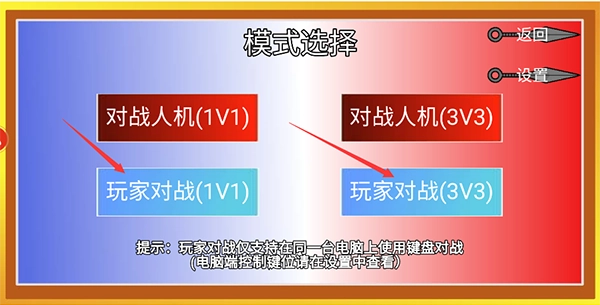 2、可根据个人喜好选择对战形式,有“1v1”单挑和“3v3”团队对抗两种选项。