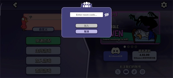 玩了一晚上根本停不下来!鹅鸭杀中文版太上头了,语音聊天+实时推理+搞笑互坑,朋友局笑到断气,陌生人局烧脑到凌晨三点还在复盘谁是鸭子?皮肤自定义超可爱,小黄鸭和黑天鹅配色绝了!联机超简单,建房秒进,万圣节新角色火鸡博士也太阴间了吧,被怪物追着跑的时候差点把手机扔出去…强烈安利给所有喜欢狼人杀但嫌规则复杂的小伙伴!