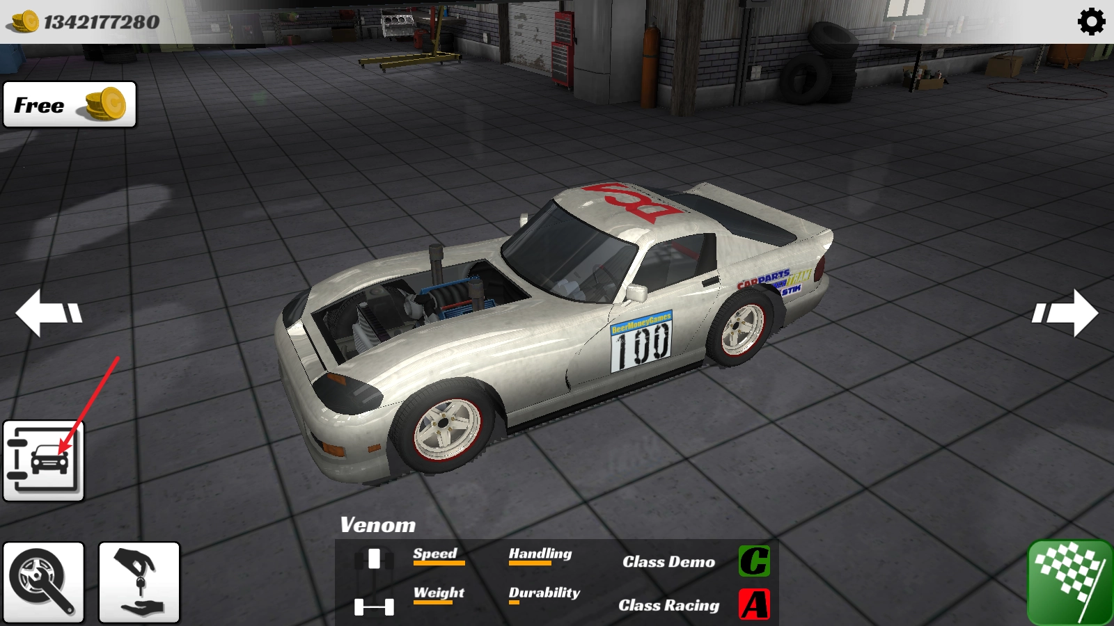 首先我们点击左侧的汽车图册,进入页面后挑选一辆需要进行改装的汽车并完成购买。