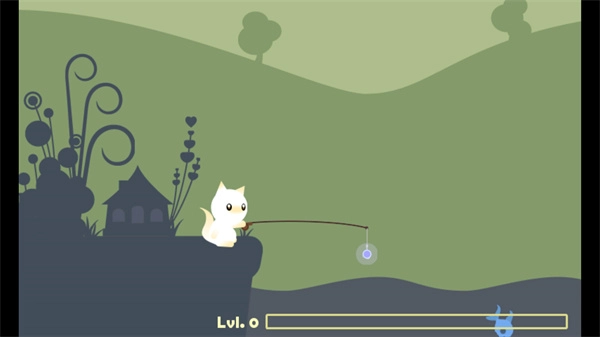 进入游戏后,只需按住屏幕,就能把猫咪手里的鱼竿投出去,要记得,得用恰当的力度才行。